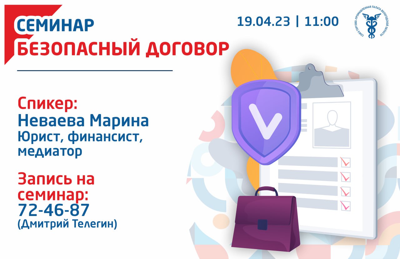 Союз Вологодская торгово-промышленная палата приглашает вас принять участие в семинаре по теме: "Безопасный договор".