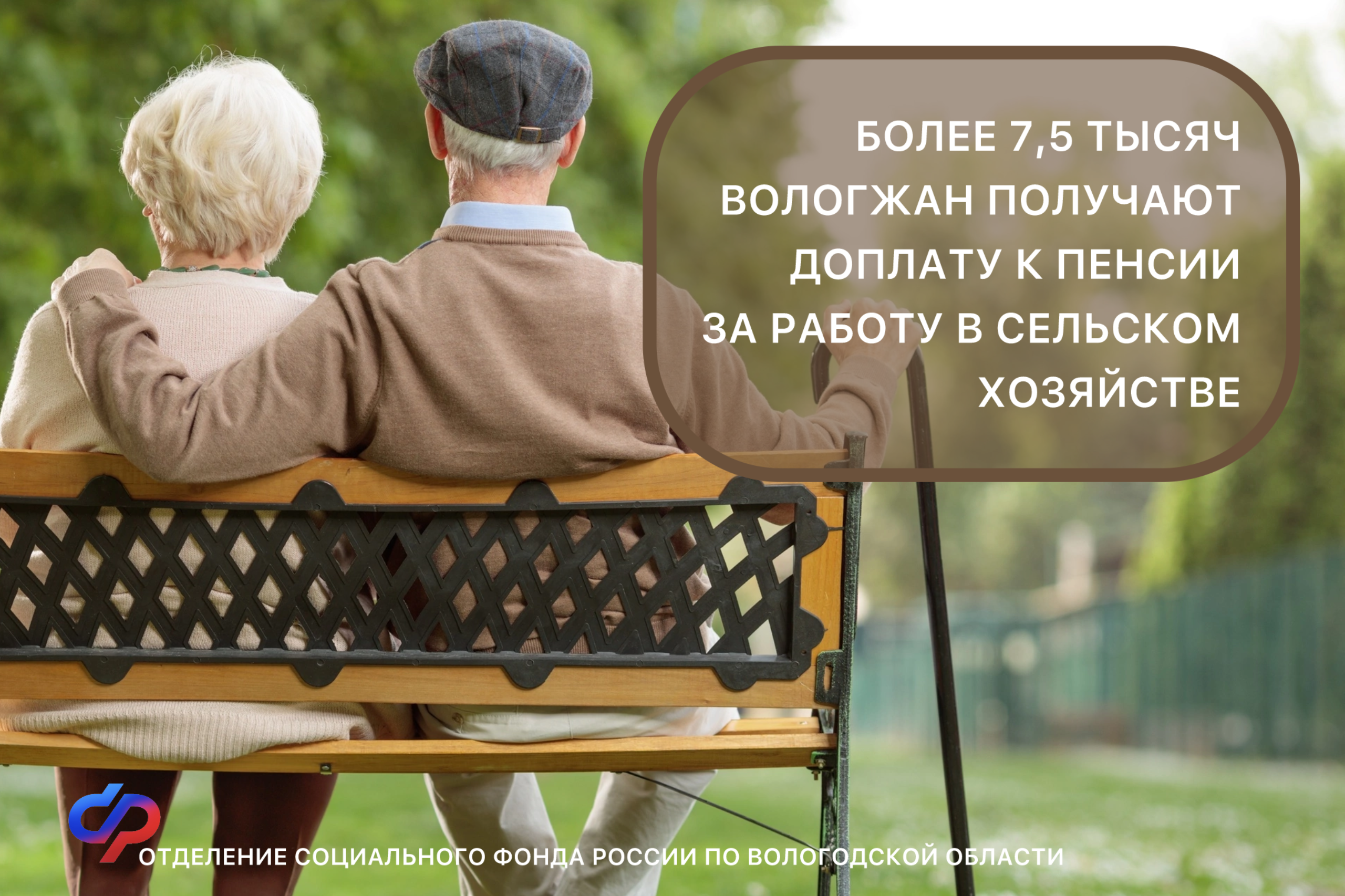 Более 7,5 тысяч пенсионеров в Вологодской области получают доплату за стаж в сельском хозяйстве. Для получателей страховой пенсии по старости она составляет 2 033 рубля. Это — 25% от установленной к пенсии фиксированной выплаты.