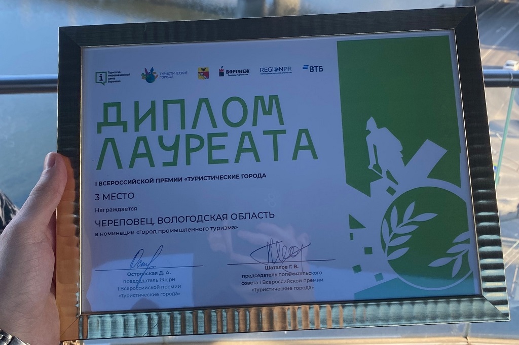 Череповец занял третье место в номинации «Город промышленного туризма» первой всероссийской премии «Туристические города».