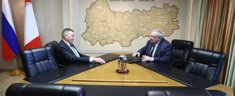 Губернатор Вологодской области Олег Кувшинников провел рабочую встречу с руководителем Росфинмониторинга по СЗФО Германом Шатским.