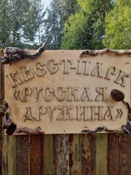 На территории оборудованы рвы, мини-лес с тропинками, мостики на веревках, препятствия из бревен и лесная поляна, где прячутся колоритные персонажи из русского фольклора.