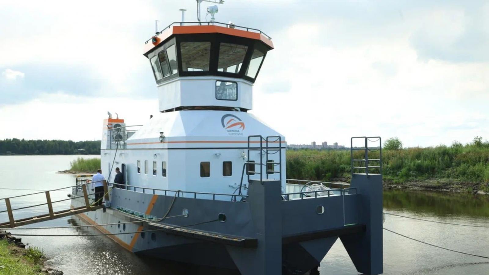 Череповецкий судостроительный завод спустил на воду новый буксир-толкач для барж.
