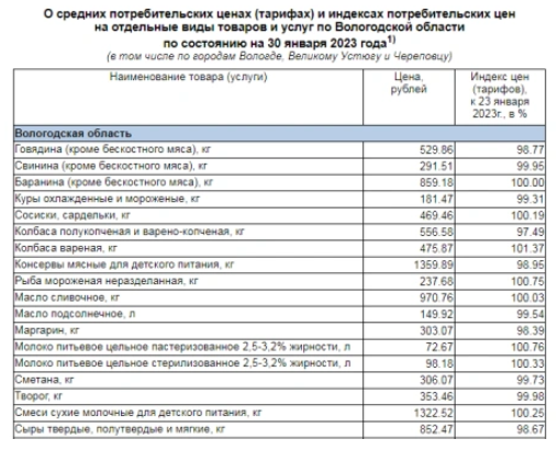 На те же 1-2% подешевели, по данным Вологдастата, говядина, свинина, полукопченая и варено-копченая колбасы, кура, мясные консервы для детей и ряд других продуктов.
