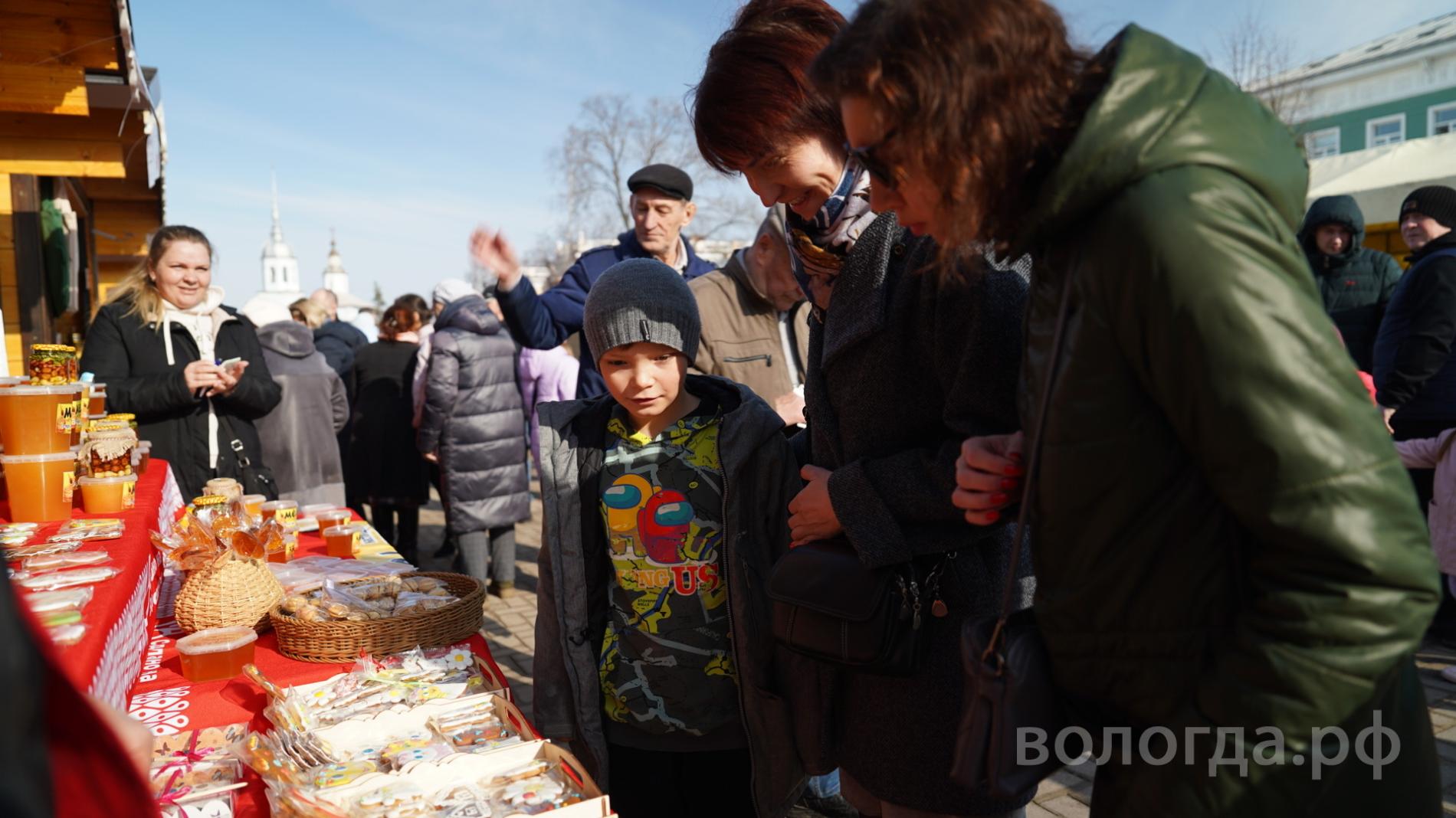 Сегодня на Кремлёвской площади работала ярмарка «Вологодская масленица». Участниками ярмарки стали как крупные торговые предприятия, так и индивидуальные предприниматели, фермеры и ремесленники.