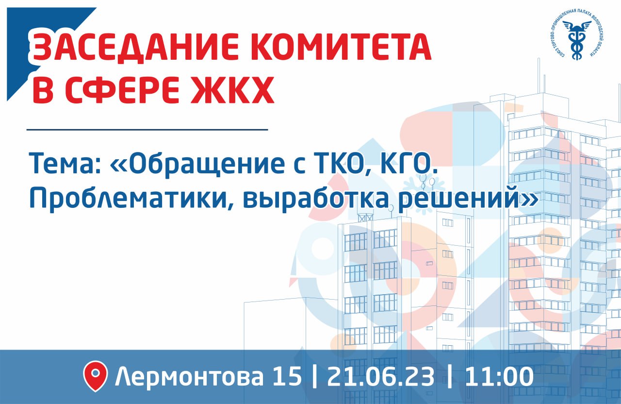 Приглашаем Управляющие компании принять участие в заседании комитета по предпринимательству в сфере ЖКХ при Вологодской ТПП на тему: «Обращение с ТКО, КГО.