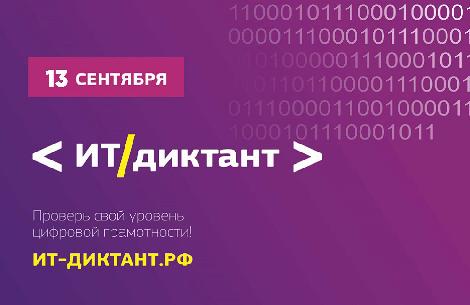 «ИТ-диктант» — Всероссийская образовательная акция по информационным технологиям, которая проводится с 2018 года с целью определения и повышения уровня цифровой грамотности населения. Мероприятие реализуется в рамках национальной программы «Цифровая экономика».