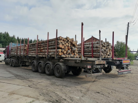 Грузовые автомобили повезли на передовую круглый лес для возведения блиндажей и различных укрытий для личного состава и военной техники.