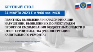 Круглый стол Союза муниципальных контрольно-счетных органов на тему «Практика выявления и классификации нарушений по результатам проверки расходования бюджетных средств в сфере строительства (реконструкции, капитального ремонта)» состоялся 24 марта 2023 года в режиме видеоконференцсвязи.