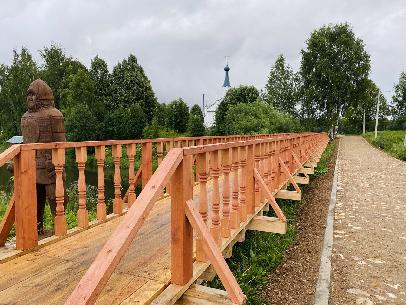 Возле храма святого благоверного князя Александра Невского уже завершились работы по ремонту пешеходного моста и устройству дороги. Остаётся установить скамейки и урны. В ближайшее время они будут доставлены.
