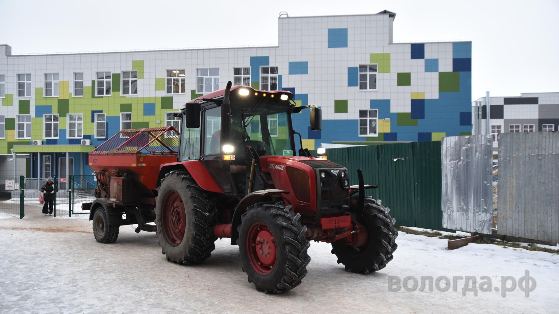 В Вологде в борьбе с гололёдом за сутки было использовано около 100 тонн реагентов. Уборка города проводится круглосуточно. В работах по очистке города ночью и днём участвуют десятки единиц спецтехники и сотрудников.