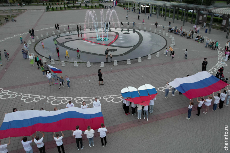 В Череповце в День флага устроили флешмоб и светомузыкальное шоу