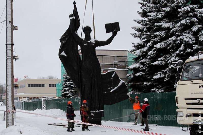 Восьмиметровый барельеф со здания училища искусств демонтировали сегодня утром. После облицовки фасада его обещают вернуть на место. Как пояснила директор училища искусств Светлана Боброва, из-за разросшихся у главного входа елей барельеф было плохо видно . После ремонта его хотят сдвинуть или разместить на фасаде в другом месте. Этот вопрос еще предстоит обсудить с главным архитектором Череповца.
