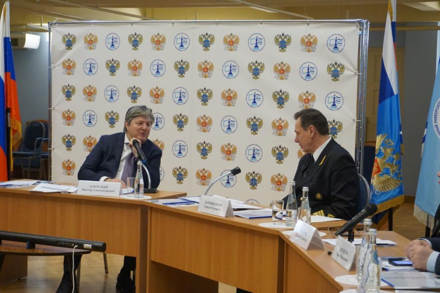Торжественное открытие заседания Попечительского совета началось с приветственных слов председателя совета Виктора Олерского и ректора ГУМРФ имени адмирала С.О. Макарова Сергея Барышникова.