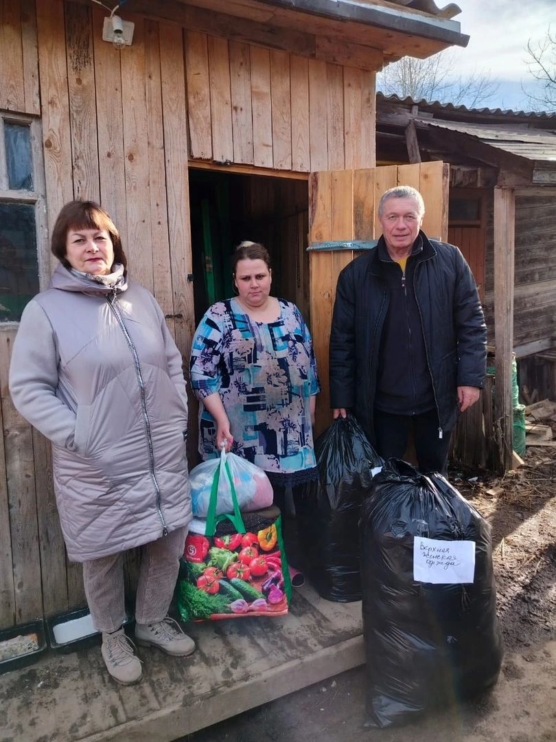 В рамках акции Председатель Совета регионального отделения партии, руководитель фракции в Законодательном Собрании области Виктор Леухин и член Совета РО Ирина Полысалова передали гуманитарную помощь многодетной семье из Грязовца.