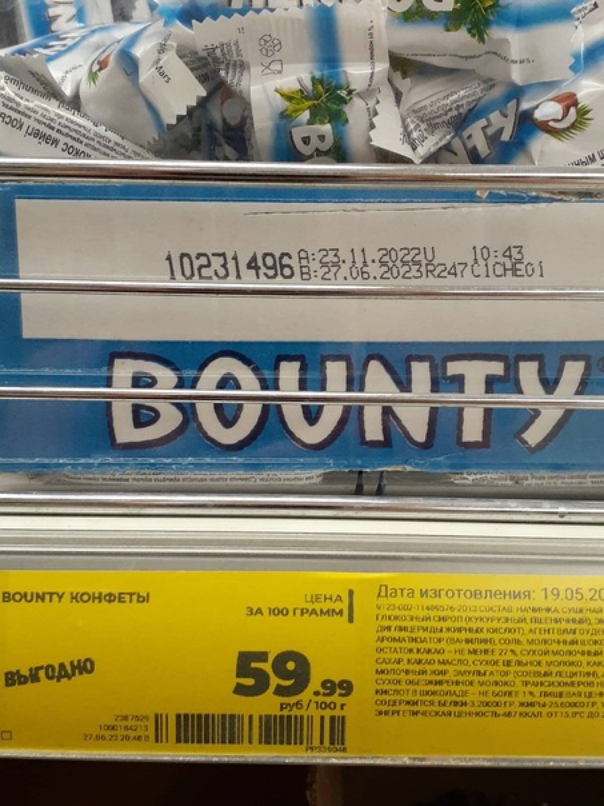 Например, в Череповце срок годности конфет "Коркунов" вышел месяц назад, а конфеты "Баунти" - 5 дней.