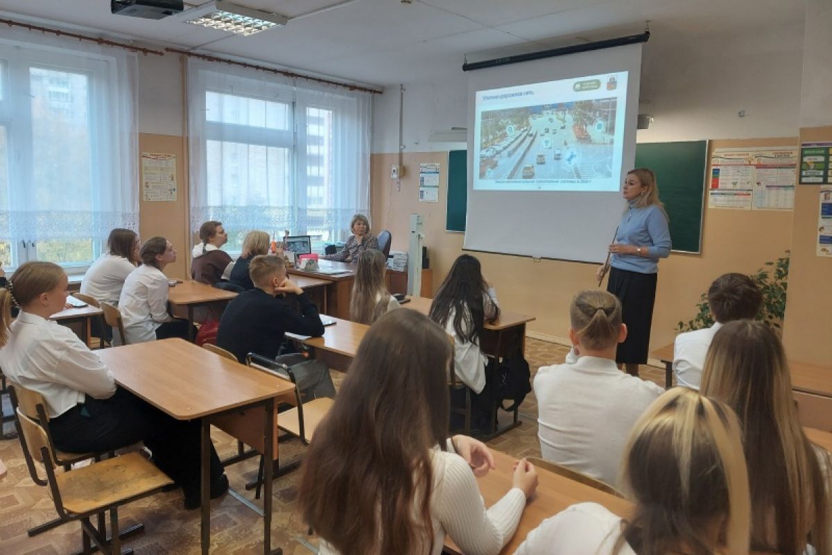 Беседа депутата Людмилы Гусевой с будущими выпускниками была посвящена родному городу: планам развития, благоустройству, вопросам экологического просвещения, мнению молодого поколения о Череповце.