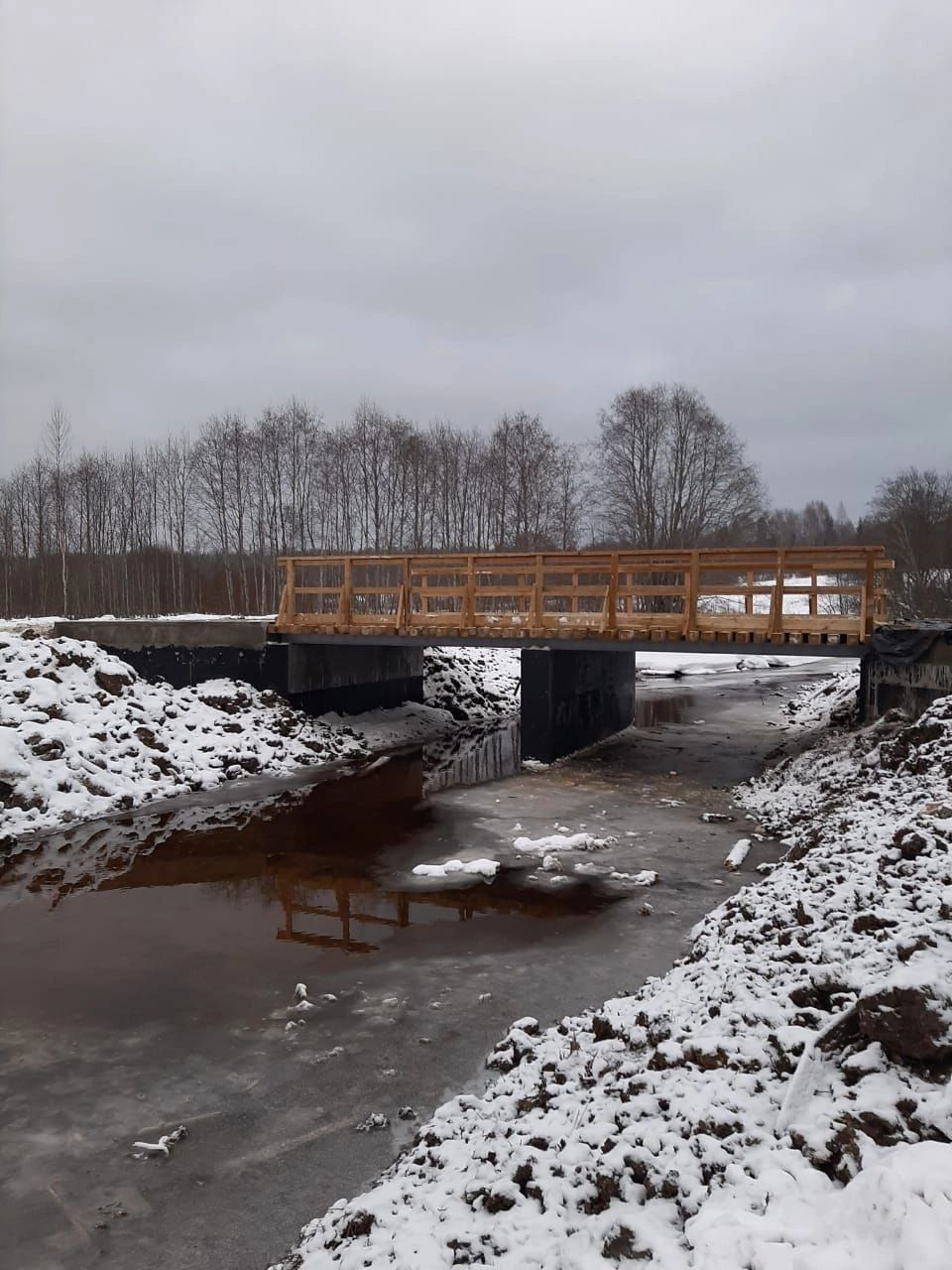 В ноябре местные жители сообщили, что в настоящее время на строительный объект "заехали рабочие", а буквально строительство моста было завершено. Теперь жители деревни Крутец могут использовать мост для комфортного передвижения.