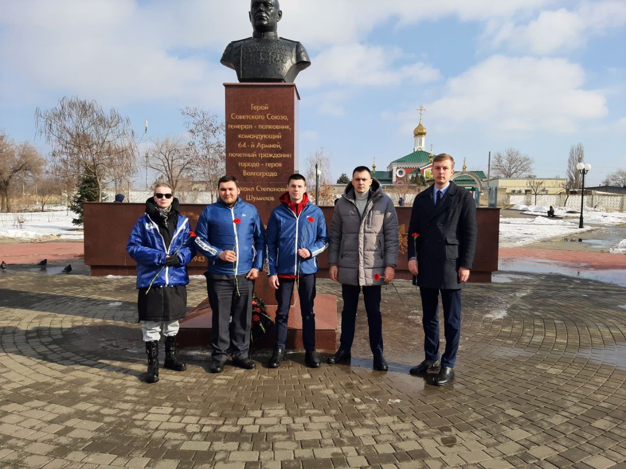 Так, молодогвардейцы Кировского местного отделения совместно с членами партии «Единая Россия» почтили память защитников минутой молчания в сквере «Доблести и Славы» у памятника командующего 64-ой армией генерала-полковника Шумилова Михаила Степановича.