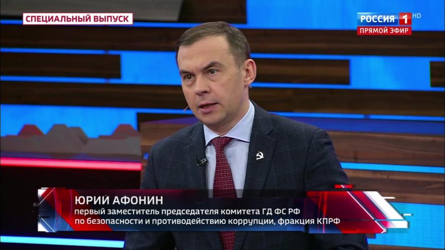 Первый заместитель Председателя ЦК КПРФ Ю.В. Афонин принял участие в программе «60 минут» на телеканале «Россия-1».