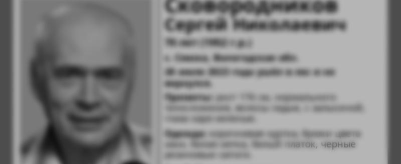 В Сямженском округе найдено тело 70-летнего пенсионера, который ушел в лес и исчез. Речь идет о Сергее Николаевиче Сковородникове.