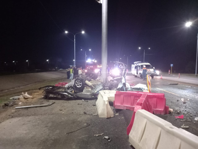 Водитель разорванной на две части и загоревшейся Мазды погиб на месте