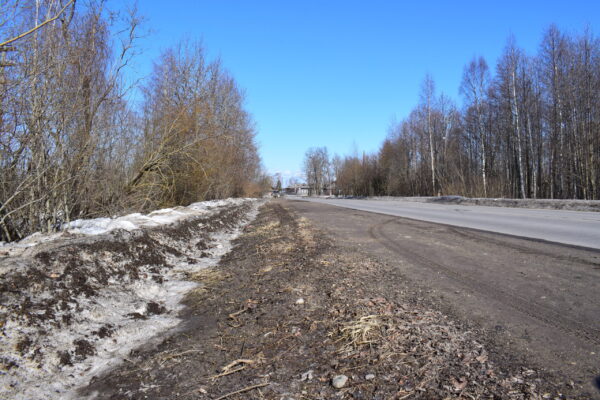 Вдоль дороги от Кузьминского понтона до улицы Набережной необходимо обустройство тротуара.