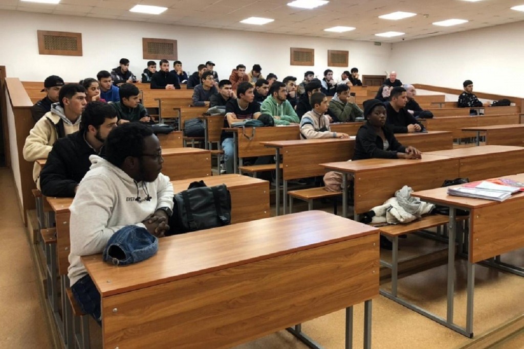 Сотрудник отдела по вопросам миграции рассказал студентам о правилах миграционного учета. Была затронута тема нарушений в сфере межрелигиозных и межконфессиональных отношений.