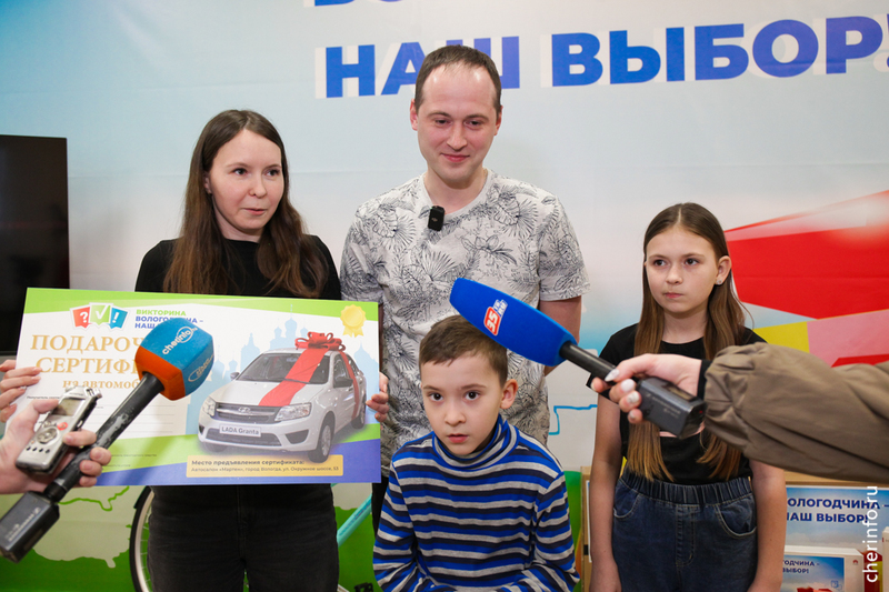 «Марина и Павел, вы стали участниками викторины, ваш номер сыграл. Вы первыми в Череповце получаете самый серьезный подарок — автомобиль „Лада-Гранта“. Счастливой вам дороги!» — пожелал Игорь Истомин.