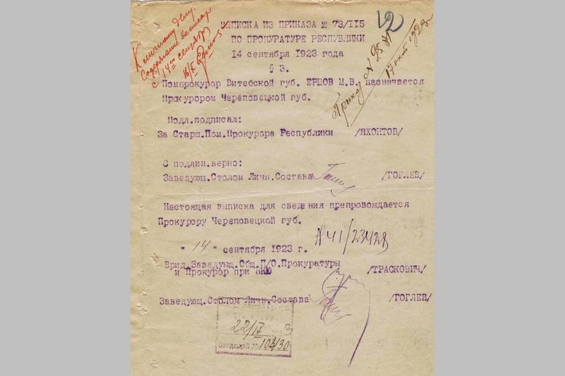 Уникальными документами поделился городской архив. Все они рассказывают о работе прокуратуры Череповецкой губернии в 1920-е годы.