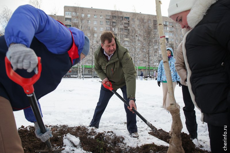 Озеленение общественного пространства состоялось в рамках проекта «Депутатская программа», запущенного Губернатором Георгием Филимоновым. В понедельник в сквере появились клёны, березы, ели и сирень. Деревья в снежную погоду сажать можно, но с соблюдением технологии, пояснила мастер «Горзеленстроя» Ольга Щёголева.