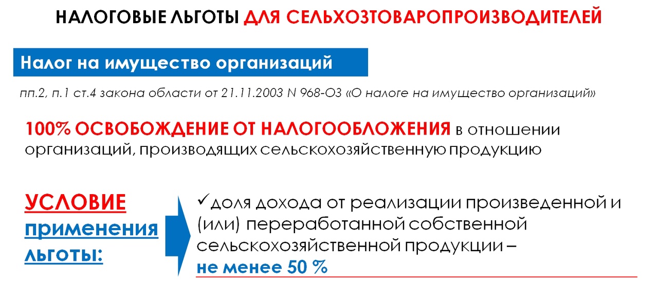 В инфокарточках представлена информация о налоговых льготах для сельхозтоваропроизводителей. Эти меры направлены на поддержку аграрного сектора и улучшение его конкурентоспособности.