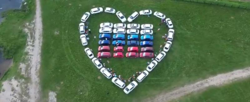 У озера Сиверского, рядом со стенами Кирилло-Белозерского монастыря, автолюбители собрались на своих машинах, окрашенных в белый, синий и красный цвета, и создали огромное сердце, внутри которого был изображен флаг Российской Федерации.