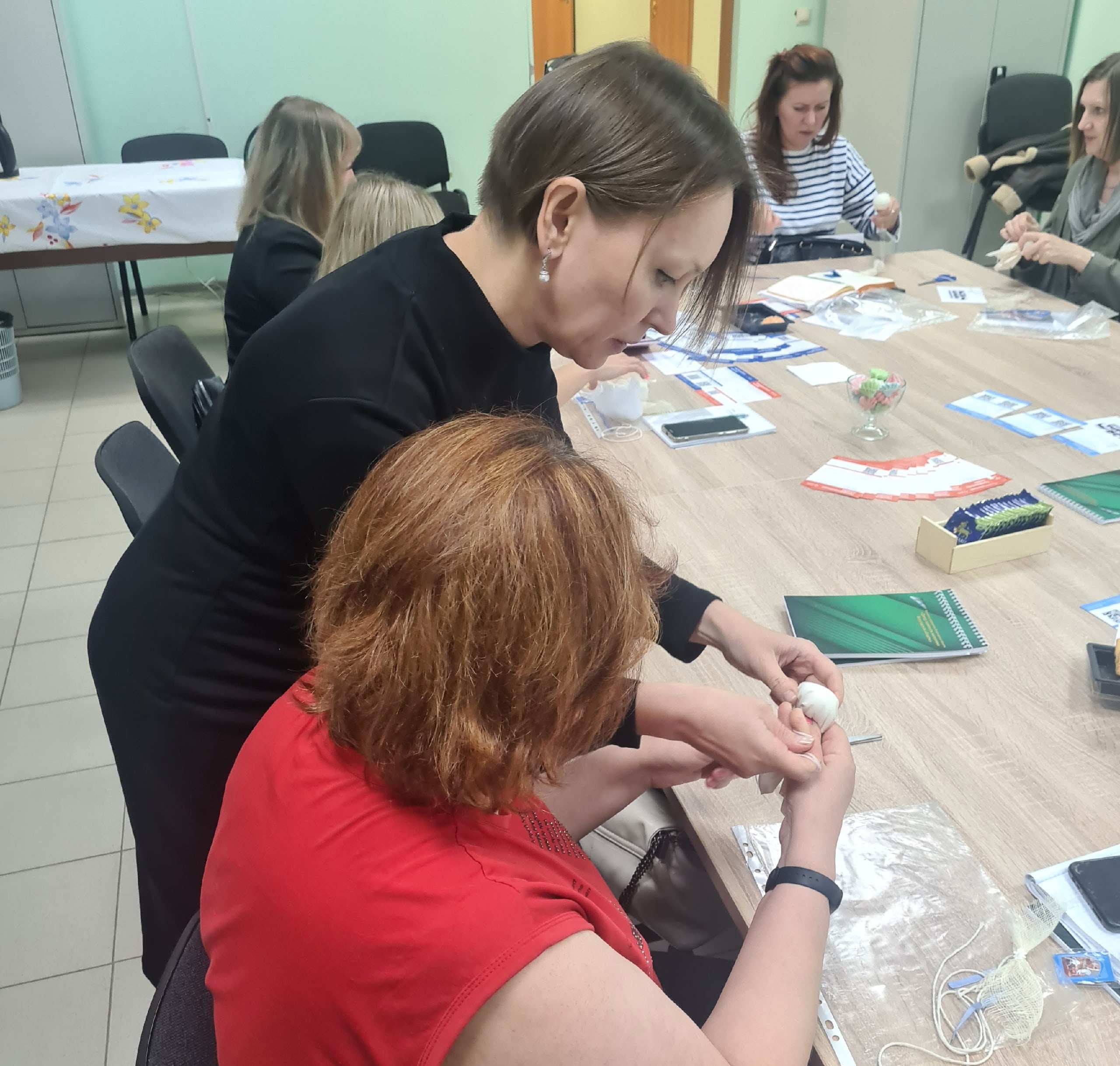 В завершении встречи преподаватели Центра «Синергия» М. Г. Корконосова и Л. Н. Русских провели мастер-класс по изготовлению текстильных Ангелов-Хранителей, которых участницы изготовили с любовью для своих близких и родных людей.