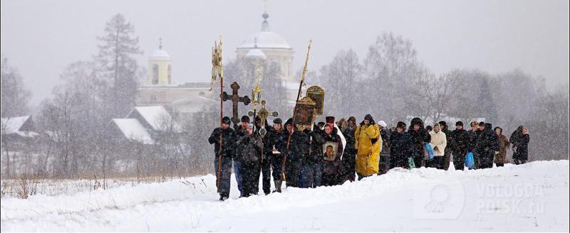В районе Лазаревского храма на Горбачевском кладбище крестный ход остановится около 12 часов 20 минут, а всего православные горожане преодолеют по льду Вологды около восьми километров.