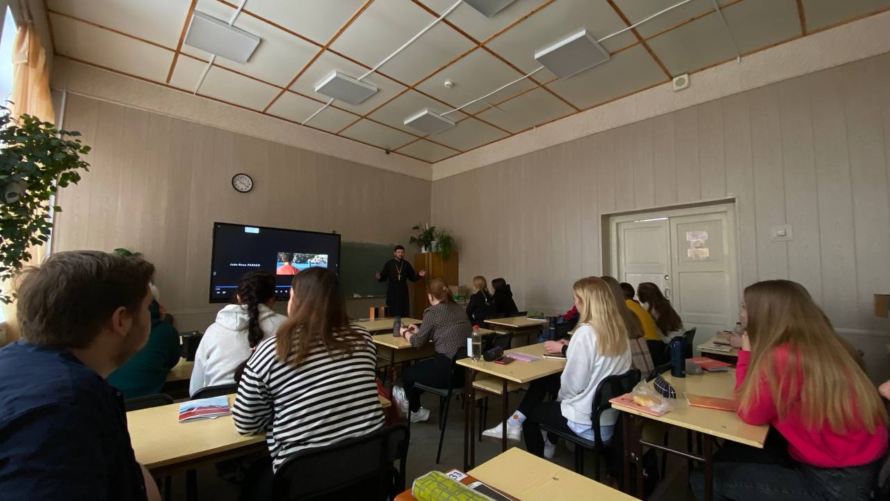 Настоятель храма святого праведного Иоанна Кронштадтского города Сокола иерей Андрей Пучин в очередной раз посетил Сокольский педагогический колледж.
