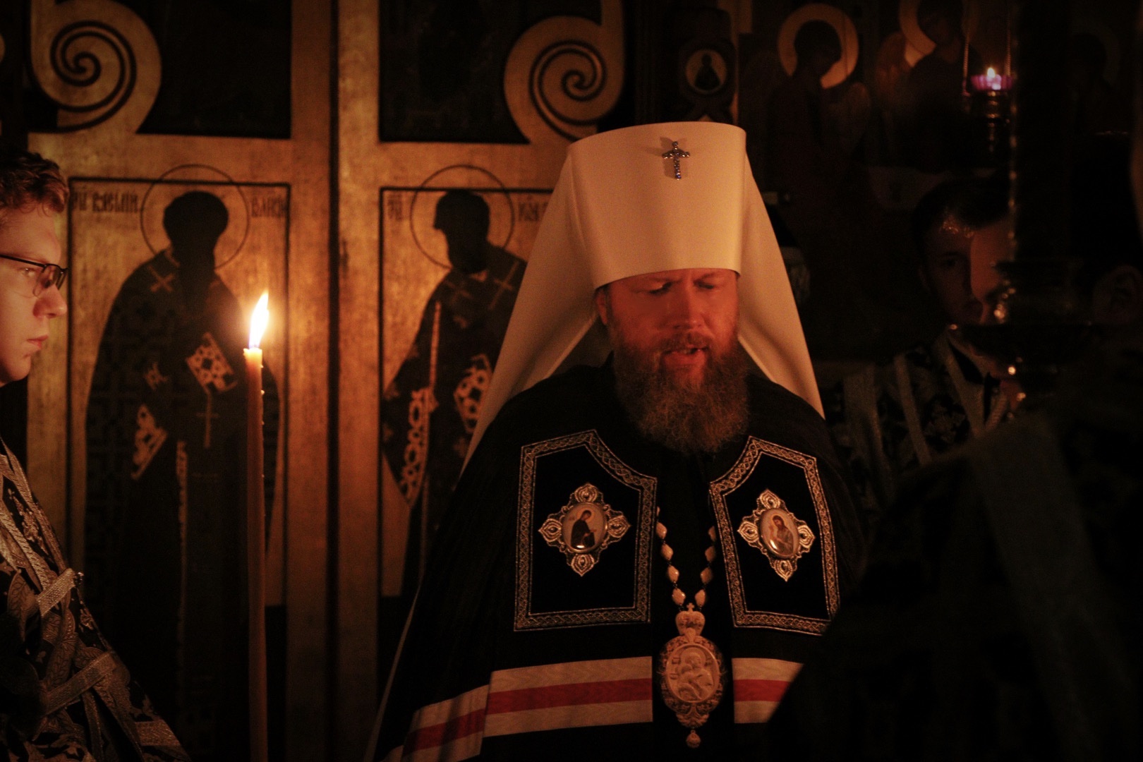 По окончании повечерия глава митрополии обратился к присутствующим с проповедью.