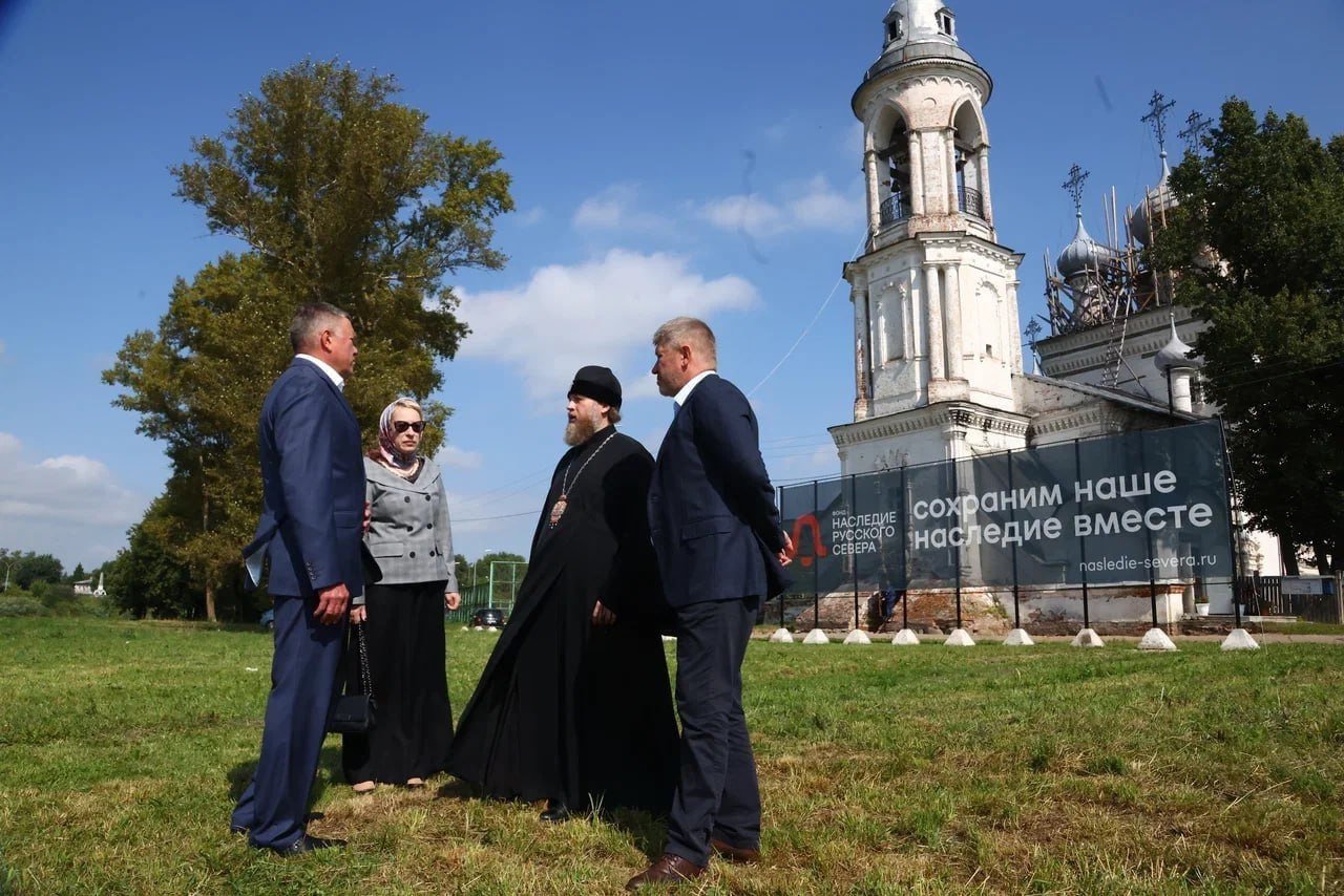 Решение о восстановлении храма принял Попечительский совет благотворительного фонда «Наследие Русского Севера». Сегодня глава региона Олег Кувшинников вместе с меценатами, представителями духовенства и надзорных органов оценил ход работ.