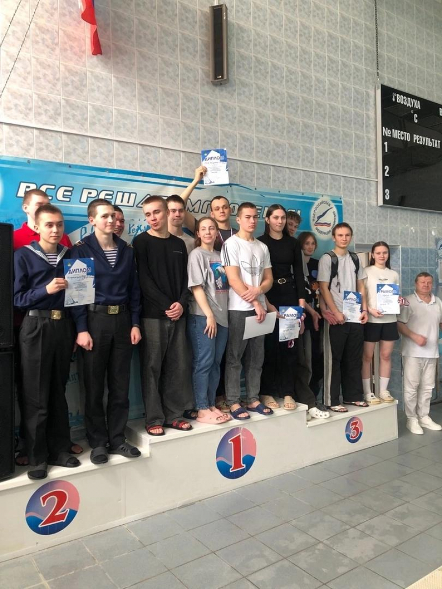 5 марта в плавательном бассейне прошло первенство Великоустюгского округа по плаванию среди команд обучающихся профессиональных образовательных организаций в зачёт годовой Спартакиады. Команда Велико-Устюгского филиала ФГБОУ ВО «ГУМРФ имени адмирала С.О. Макарова» заняла 2 место. В личном зачёте 1 место занял Сумороков Артём 53 СВ группа.