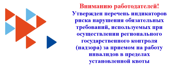Департамент труда и занятости населения области информирует об утверждении постановлением Правительства Вологодской области от 18.09.2023 года № 1062 новых индикаторов риска нарушения обязательных требований, используемых при осуществлении регионального государственного контроля (надзора) за приемом на работу инвалидов в пределах установленной квоты: