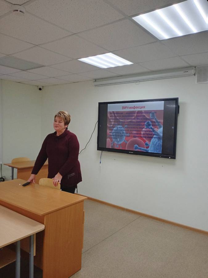 1 декабря заведующий Центром профилактики и борьбы со СПИДом Татьяна Валентиновна Крылова провела в нашем колледже лекцию, посвященную профилактике заражения ВИЧ-инфекцией при выполнении профессиональных обязанностей.