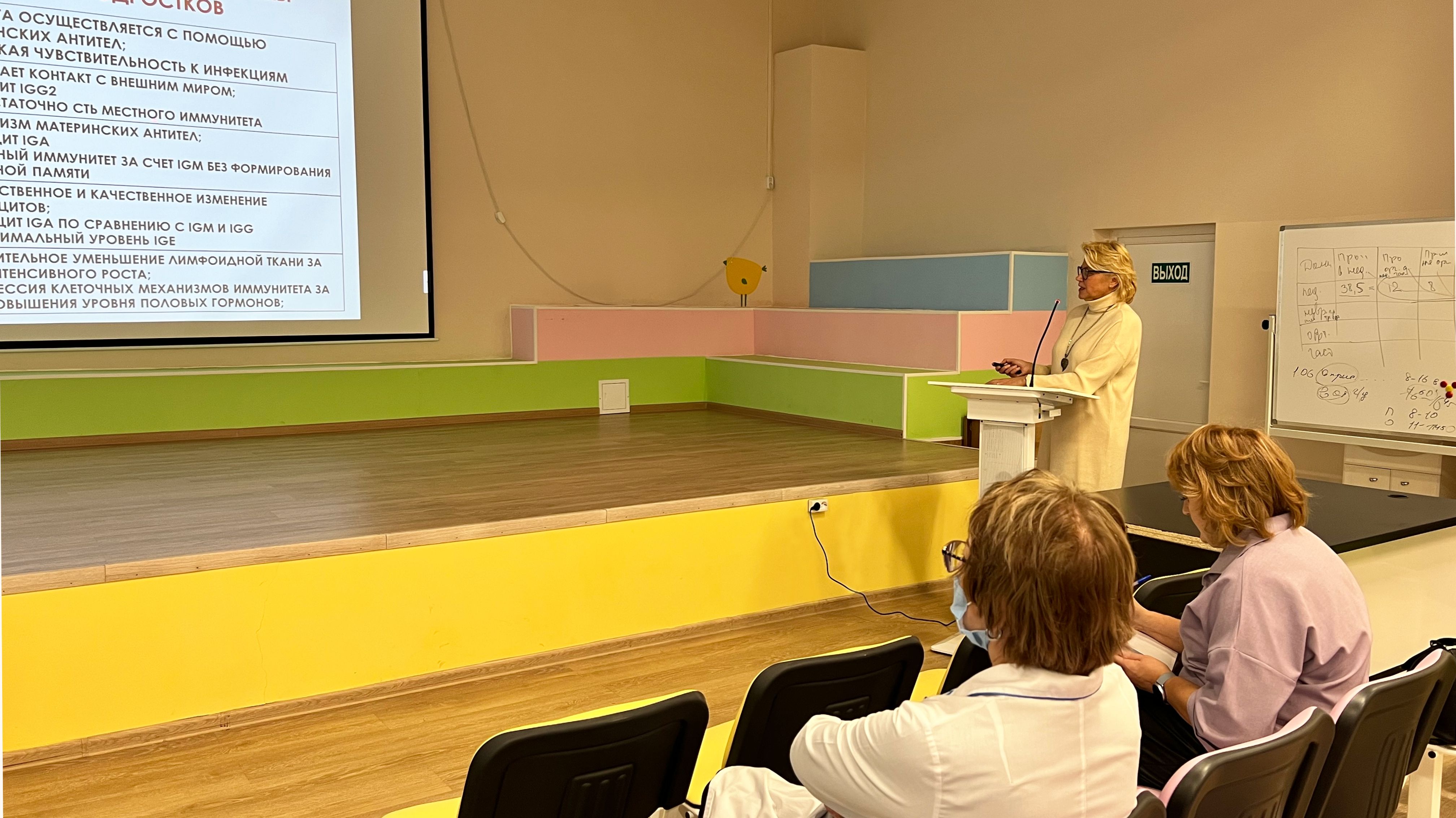 Перед коллегами выступила Ирина Бобошко , доктор медицинских наук, профессор кафедры педиатрии с курсом здорового ребёнка и общего ухода за детьми Ивановской государственной медицинской академии.