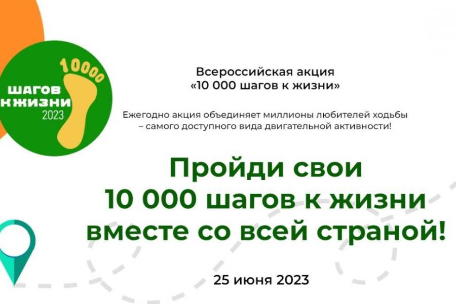 25 июня 2023 года во всех субъектах России состоится всероссийская акция «10 000 шагов к жизни».