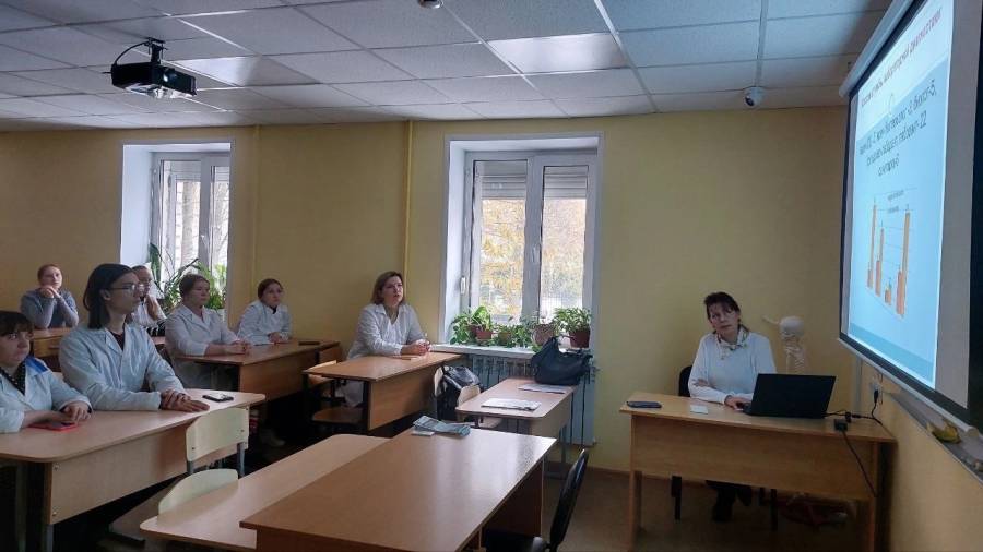 Заместитель главного врача по управлению сестринской деятельностью - Русанова Наталья Сергеевна познакомила обучающихся с деятельностью учреждения, проинформировала о мерах социальной поддержки и потребности больницы в специалистах со средним медицинским образованием.
