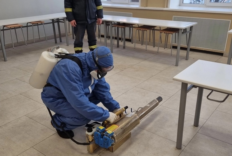 Как сообщил мэр Вадим Германов, работа ведется по выходным: специалисты в спецкостюмах обрабатывают помещения с помощью установок горячего тумана,