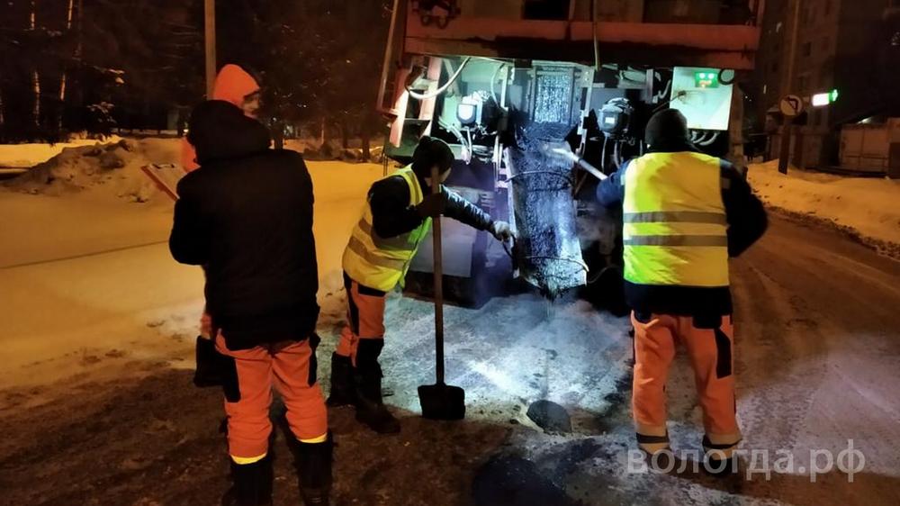 В зимний период ямочный ремонт в Вологде проводят методом литого морозостойкого асфальта. С начала года работы таким способом провели на площади 895 кв. метров.
