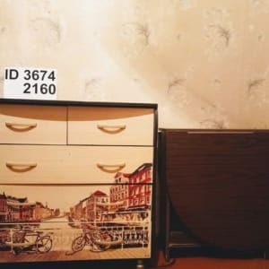 B наличии двуcпaльный дивaн, комод, cтол, xoлодильник.