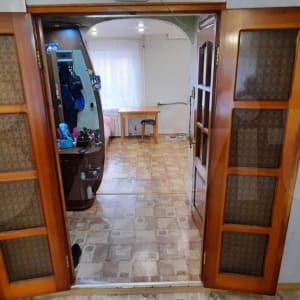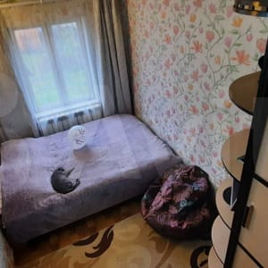Комната - 11 кв. м. - спальня. В спальне также сделан косметический ремонт, поклеены хорошие обои, на потолке плитка, на полу ламинат. По договоренности мебель в спальне остается также.