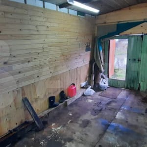 Санузел совмещенный. Сделан косметический ремонт в 2017 г., был установлен новый унитаз, раковина, водонагреватель. Была заменена проводка, установлены новые пластиковые трубы. Все обшито пластиковыми панелями.