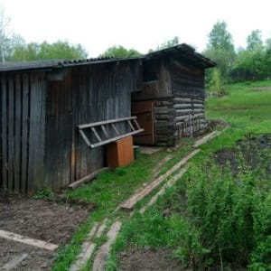 На участке есть хоз.постройки: хлев и дровяной сарай.